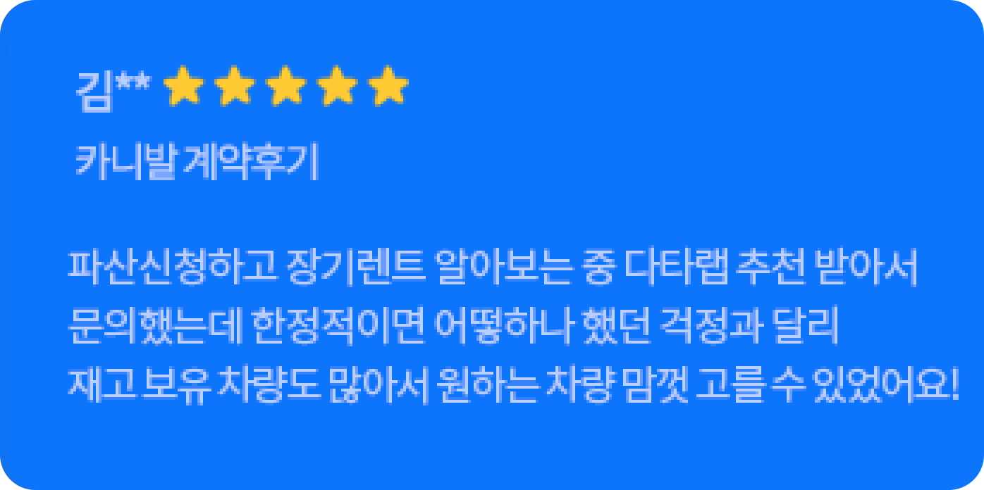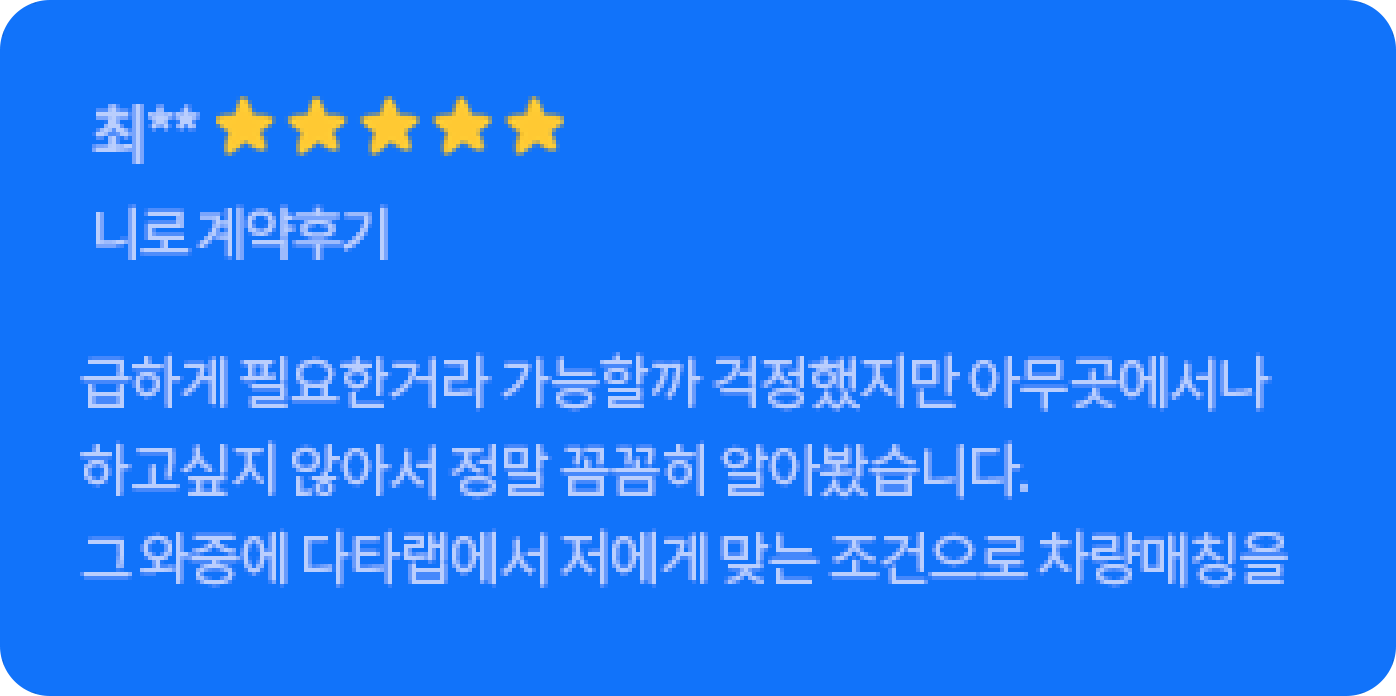 고객님께서 1월 20일부터 심사를 보시며, 계약일까지 한달내로 색상은 블랙 아니면 안하신다고 하셨습니다. 매일 블랙나오기만을 기다리다가 재고를 찾아서 인도까지 도와드렸습니다. 고객님도 너무 만족하시고 지인분들도 소개해드린다고 하셔서 뿌듯했습니다. 담당매니저 : 김현지